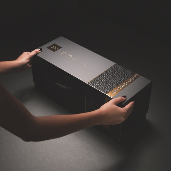 Check into glamour this festive season and embrace the art of timeless, seductive styling. Dressed in festive elegance, this luxurious collection pairs our most revolutionary innovation - ghd Duet Style 2-in-1 hot air styler - with the All-Rounder Paddle Brush and a coordinating heat-resistant bag and mat.¹