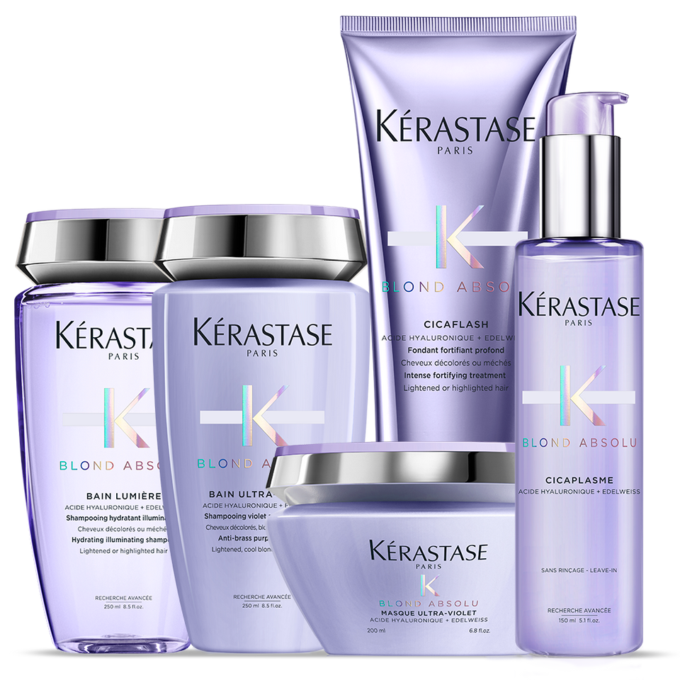 Blond Absolu is the ultimate answer for all blondes. A unique combination of potent Hyaluronic Acid and Edelweiss flower deeply nourished fiber and neutralizes brassiness for an illuminated blonde. This range, also results in silky soft, healthier-looking blonde hair.