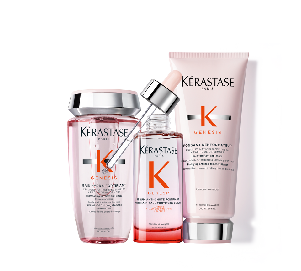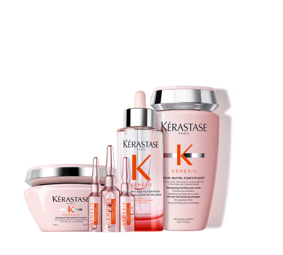 Genesis dual anti-fall haircare treats hair fall due to breakage, for all women, in all lifestyles, with all degree of hair fall. Genesis is supercharged with ingredients to answer your hair-fall needs: Aminexil, Edelweiss native cells, Ginger roots. This range fortifies and nourishes the hair.